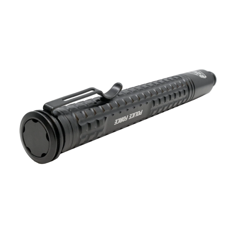 The new Police Force 16 inch Tail Press EZ Close expandable Steel Baton opens with a flick of the wrist and locks in place automatically. Collapsing it is easy- no banging on concrete necessary. Simply press the EZ close tail switch and the baton collapses with a light push against your palm. Its grenade texture allows for a firm grip in any situation. At only 7.25” contracted it can easily fit in a pocket or purse, or the attached belt clip can be used for quick access. With the window breaker tip, the baton can be used to escape from your car or home.