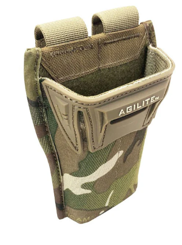 • The Agilite Pincer Pouch is a MOLLE backed fast-draw low profile elastic mag pouch that holds a single 5.56 Magazine. Its Patented funneled magwell design allows you to grab or re-index a magazine with just one hand.