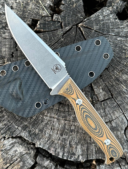 The handle is expertly constructed from a blend of 3K carbon fiber and G10, both lightweight yet incredibly strong materials. Carbon fiber offers impressive strength and lightness, while G10 enhances durability. Together, they create a comfortable and secure grip, making the knife easy to handle.