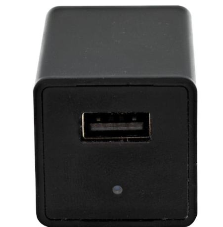 USB Charger Hidden Spy Camera with Built in DVR. In this age of electronics, everyone has a variety of adapters and chargers plugged into nearly every electrical outlet. No one will even pay attention to the USB charger hidden camera. It records in crisp clear 1920x1080p resolution at 30fps on a 32GB micro SD card which will store up to 7 hours of footage. This covert USB adapter is great for office security or a nanny cam at home. It is very easy to use and will do Loop or Motion Activated recordings. Easily connects to your computer to download and view video footage.
